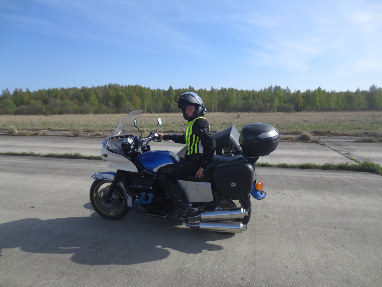 Kirjas oli, et esimese õlivahetuseni tuli sõita 1000 km. Siit järgmiseks tekkis aga mõte see ühe päevaga ära sõita. Saaks kohe selgust, mis ratas ja kuda see jalgevahele ja mõistusesse võiks sobida. Pikem sõit selle rattaga oli ju plaanitud. Järgmine mõte oli, et see tuhande kanti tee võiks kulgeda võimalikult mööda kodumaa piirjooni. Alustasin hommikul päris vara ja kulgesin mööda piirilinnuu, või noh sinnakanti. Narva, Mustvee, Võru, Valga, Pärnu, Haapsalu ja parajas õhtuhämaruses jälle Tallinn. 960km oli vist seekord sõidu pikkus ja sissesõit saigi ühe korraga tehtud.